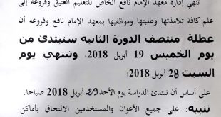 إعلان بالشروع في التسجيل بالطور النهائي العتيق بمعهد الإمام نافع الخاص للتعليم العتيق بطنجة