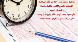 مذكرة داخلية عدد: 234 في شأن المراقبة المستمرة الموحدة للدورة الأولى رقم 2 والامتحان الموحد على صعيد معهد الإمام نافع وفروعه بــرسم الموسم الدراسي والجامعي: 2018-2019